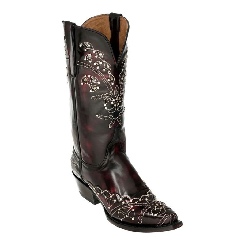 Ferrini Ladies Wild Diva Snip Toe Black Cherry Western Boots The Ferrini Ladies Sweetheart Square Toe Western Boots are handcrafted and include leather soles and lining, orthopedic cushioned foot bed and hand driven wooden pegs