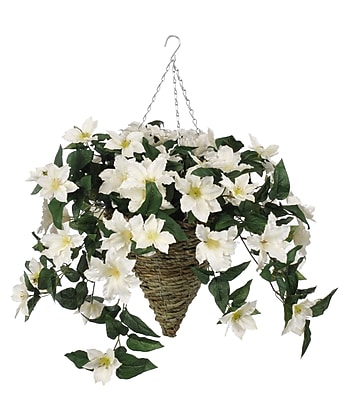 Related Product House of Silk Flowers Artificial Clematis Hanging Plant in Cone Basket; Cream