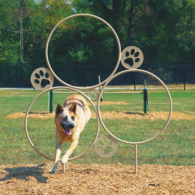 Dogs and their owners will enjoy the challenge that this large hoop jump trainer provides the dog park