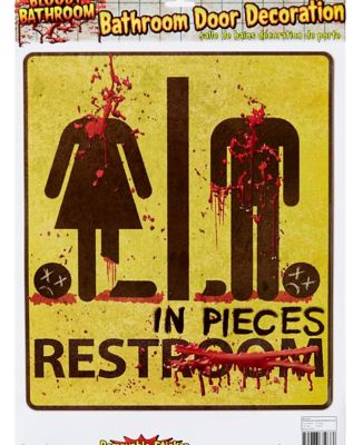 Add some creepy Halloween spirit to your home or work bathroom with this Bloody Bathroom Cling Sign! This hilarious sign features a beheaded women's and men's bathroom stick figure