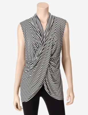 Chaus Floral Safari Stripe Print Drape Top a Misses