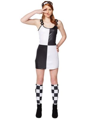 Add the included checkered boot covers and some cool 60's accessories (sold separately) and your night will be far out! Yeah Baby 60's Adult Women's Costume includes: Dress Headband Bootcovers Bracelets and earrings not included