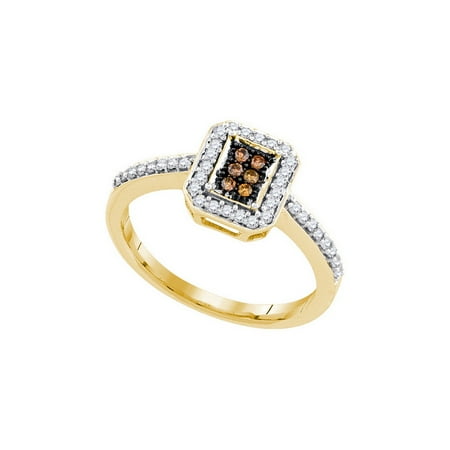 10K Yellow Gold 0.26ctw Shiny Pave Cognac Brown Diamond Fashion Asscher Ring