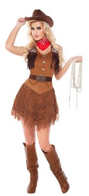 Wrangle up yourself a thoroughbred while wearing this sexy Silver Star Cowgirl Women's Costume! The cowgirl costume features a brown fringe dress