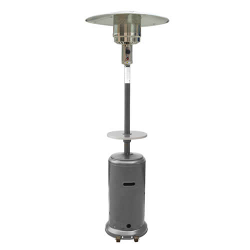 The AZ Patio Heaters 87 Hammered Silver Patio Heater with Table (HLDS01-CBT) cranks out 41,000 BTUs of heating power to keep you and your guests warm without having to retreat to the indoors
